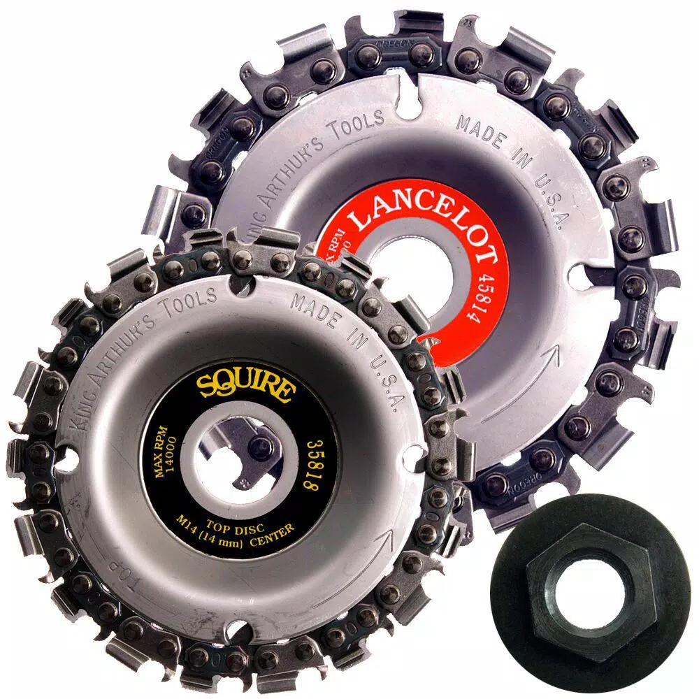 Lancelot/Squire Combo Double Up For More Power. Tandem Combinations – Two saw chain cutter accessories used with our universal nut will virtually double productivity in a safe and efficient way. In addition, you have the bonus that both blades can be used individually
