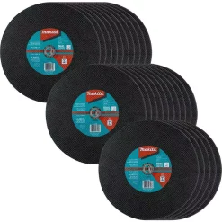 The Makita 14 in. x 1 in. x 3/32 in. Abrasive Cut-Off Wheel, 25-pack. (B-57598-25) is double reinforced for longer life, less burr and less vibration. Designed for cutting heavier Gauge metal such as pipe or angle iron, the Abrasive Cut-Off Wheel is ideal for use with 14 Cut-Off Saws. A special bond is engineered to improve cutting speed and wheel life.