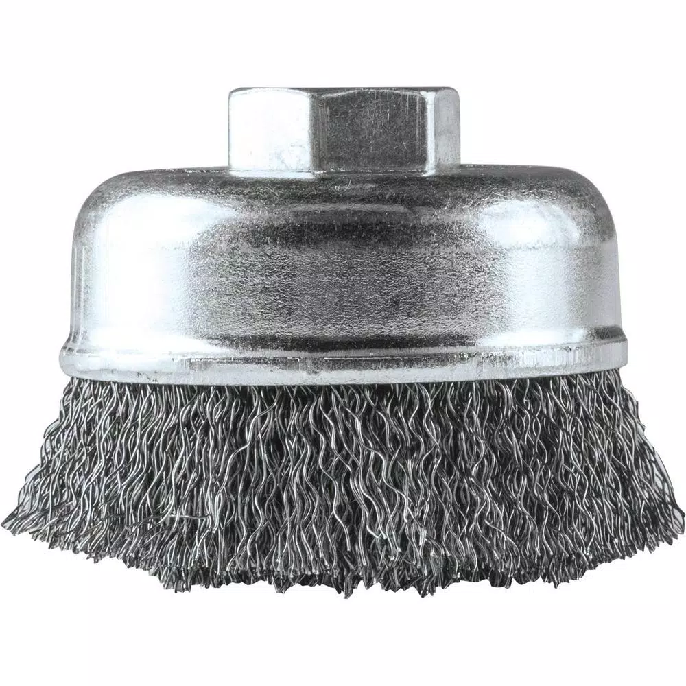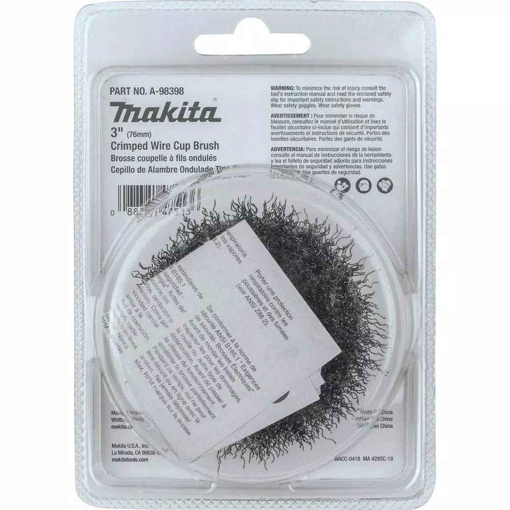 Makita Crimped Wire Cup Brushes are designed to work with angle grinders for a variety of material removal applications. The durable carbon steel wire construction is engineered for long service life. It is ideal for flat or irregular surfaces and edges.