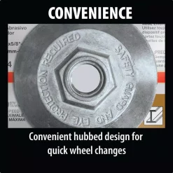 - 36 abrasive grit for efficient material removal, 1/4 in. thick, 5/8-11 in. arbor