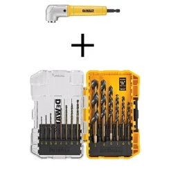 The DEWALT MAXFIT Right Angle Attachment features a compact 1-1/2 in. front-to-back design. This Right angle holder provide users with accessibility in close-quarter drilling and fastening applications. The metal-gear case design provides durability and longer life while the addition of a robust magnet provides fastener retention. DWA1184 Tired of drill bits that dull quickly and snap under the slightest pressure. Then step up to DEWALT Black Oxide Drill Bits. These industrial-grade twist-drill bits are cut from super-hard, resilient black oxide for the ultimate in durability and strength. Each bit features a 135° split point for enhanced hole-drilling performance, including quick starts and clean, burr-free holes. For use in wood, metal, plastics and fiberglass.