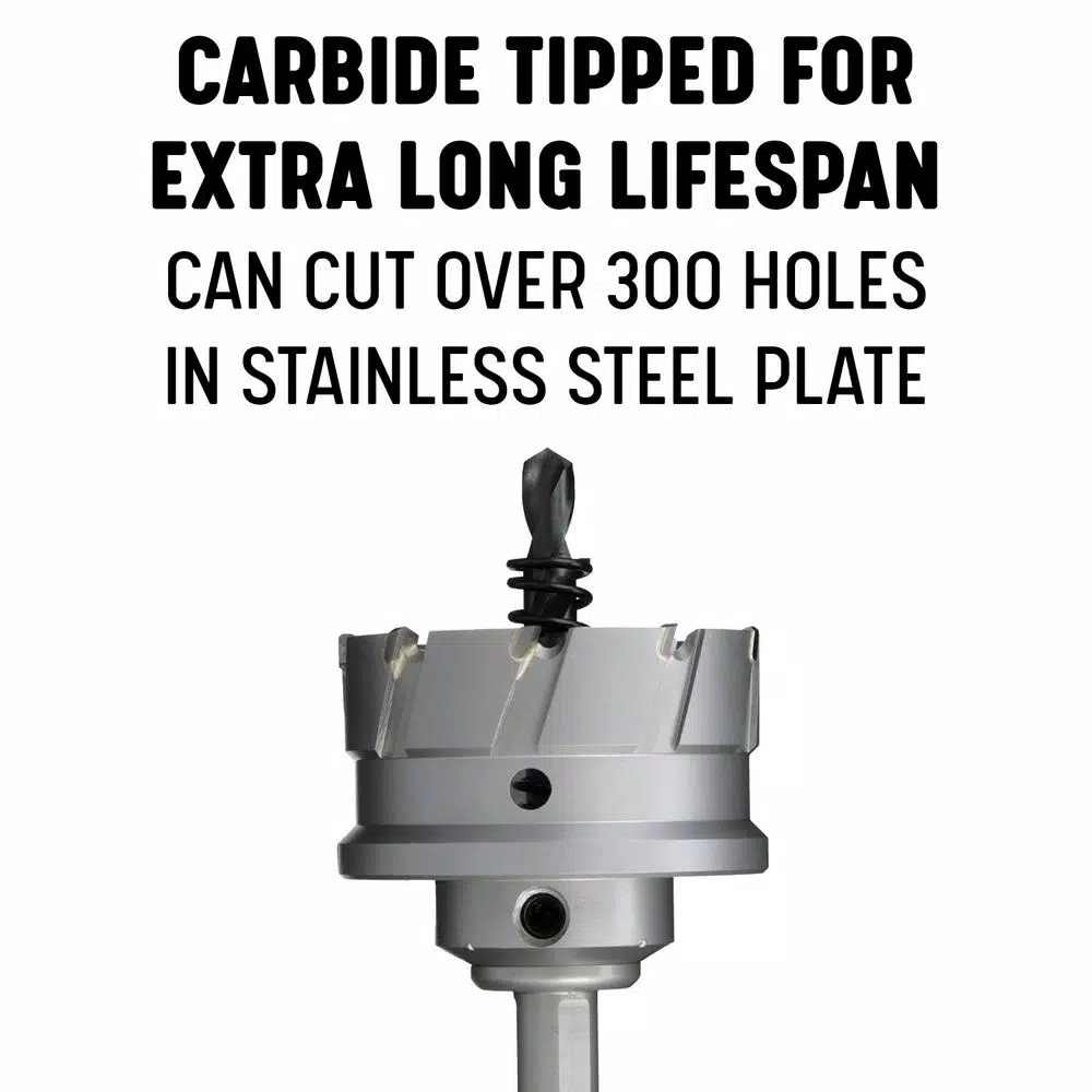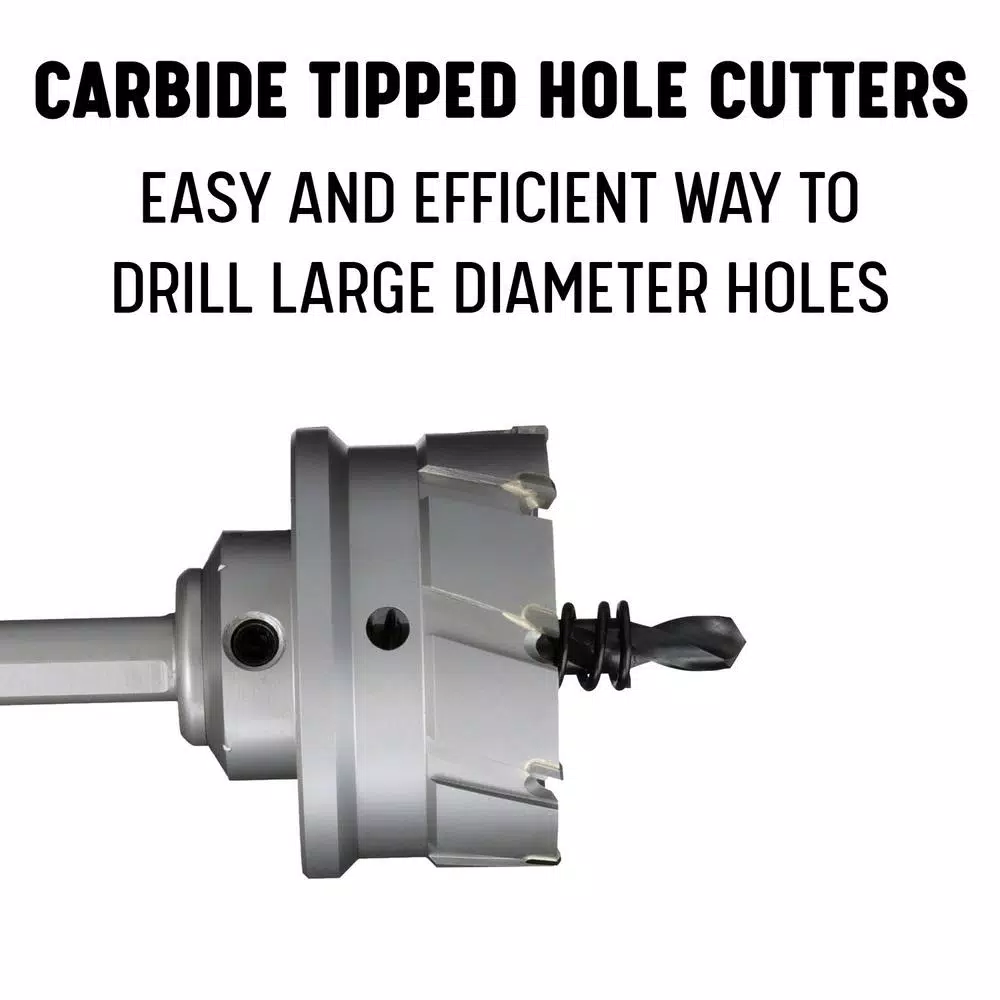 Drill America Carbide Tipped Hole Cutters offer an easy and efficient way to drill larger diameter holes without requiring large drill bits and extra-large chucks. They are manufactured from premium grade high speed steel with carbide tipped teeth for extra long lifespan. Carbide Tipped Hole Cutters cut a wide range of materials such as stainless steel, cast iron, sheet metal and copper. They also work well with abrasive materials like high density resin and metal plates.