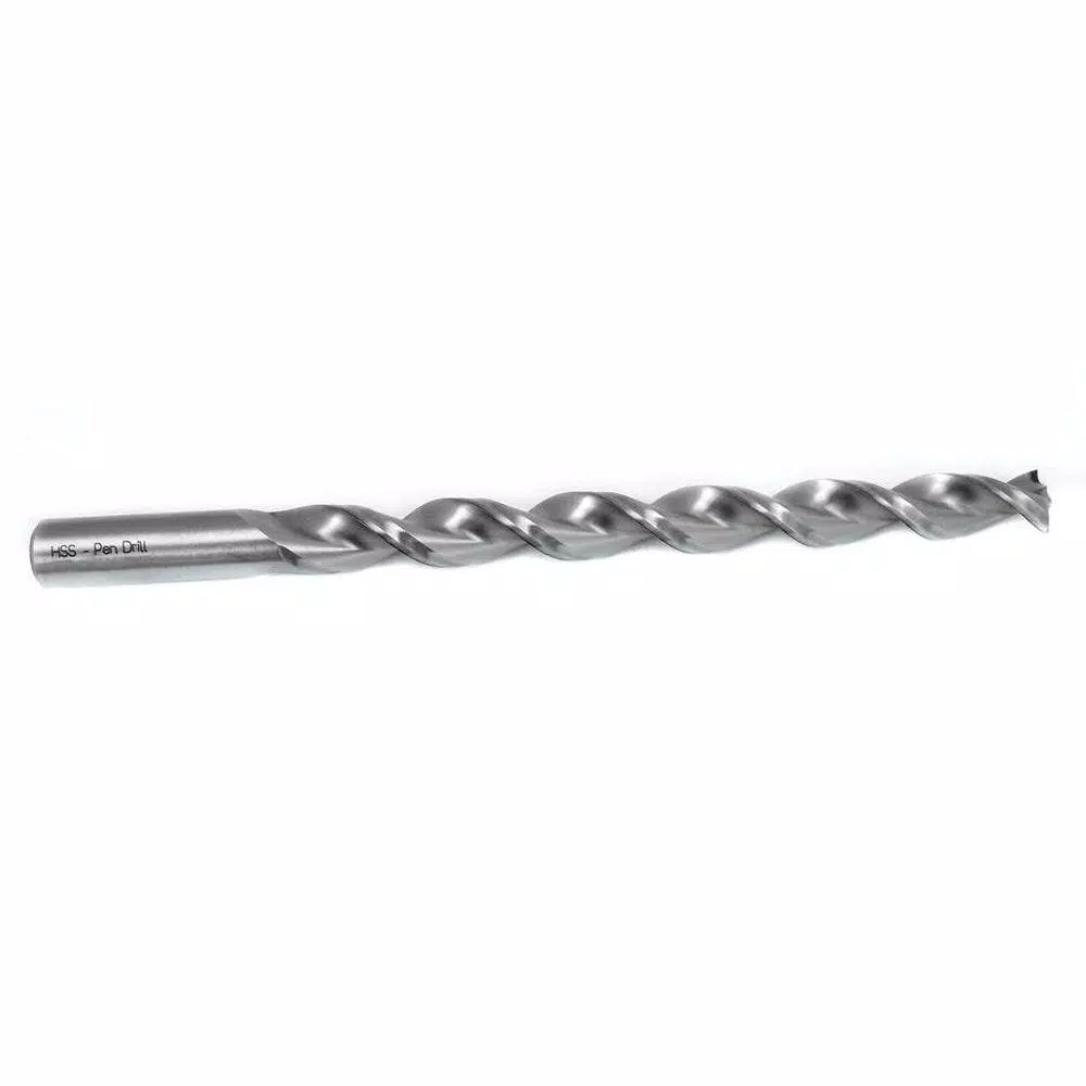 Patented cutting tip, parabolic flute design, and high speed steel construction are combined in these drill bits ideal for the serious pen turner. The FCE Five Star cutting tip has four cutting points designed to create fine sawdust which reduces resistance and heat build-up. With less resistance and heat these bits have a longer life while maintaining their sharp cutting edges in soft and hard woods as well as acrylics. The parabolic flute design quickly ejects the fine sawdust eliminating the need to withdraw the bit until the hole has been drilled all the way through. Made in Germany.