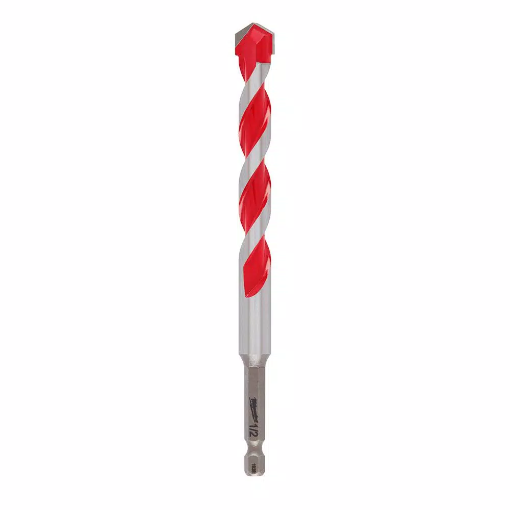 The Milwaukee 1/2 in. x 4 in. x 6 in. SHOCKWAVE Carbide Hammer Drill Bit uses sharpened carbide to deliver up to 5x longer life in concrete and up to 2x faster drilling into masonry materials. Engineered with a precision ground tip, these bits deliver faster starts and less walking in concrete, brick and block. The carbide-tipped masonry drill bits’ wide flute design removes dust faster, reducing heat and delivering more holes per charge. Equipped with a 1/4 in. Hex Shank, Milwaukee SHOCKWAVE Carbide Hammer Drill Bits are the ideal solution for drilling in masonry materials with both impacts and hammer drills/drivers.