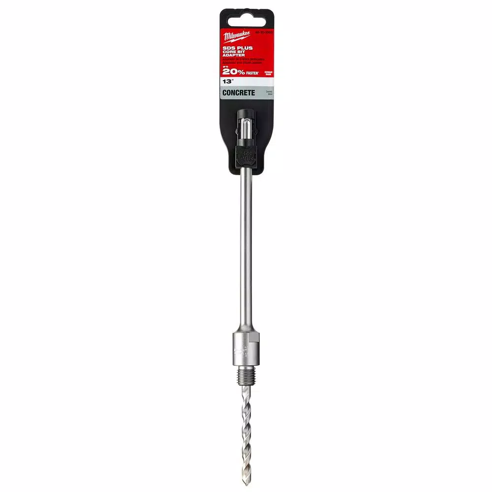Milwaukee(R) SDS-Plus Masonry Core Bits are ideal for drilling large holes in brick, block, and concrete with SDS-Plus rotary hammers. Asymmetrical carbide teeth break up material more effectively resulting in up to 20% faster drilling speeds. Centering bits allow for easy alignment of the hole and precise spot drilling. The versatile two-piece design allows users to drill with several different core bit sizes using one adapter. The spiral core body design minimizes friction in the hole and aids in dust removal during the application. Core bits cut with the outer edge only, therefore the operator must remove the inner core continue drilling for holes deeper than 3″.