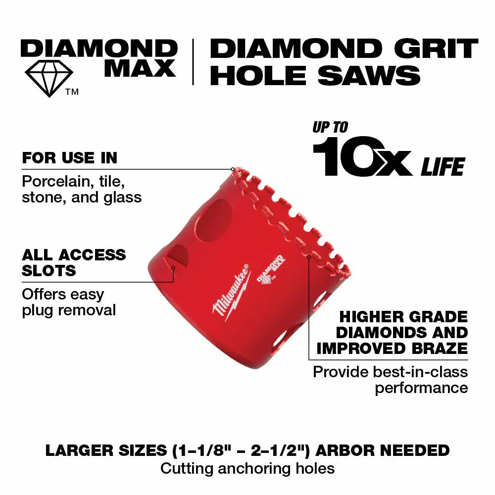 - Includes (1) 2″ Diamond MAX™ Hole Saw
