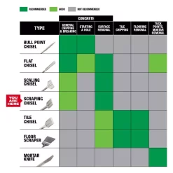 - Longer life in concrete demolition over standard Milwaukee chisels