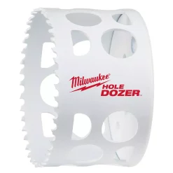 Bi-metal tooth construction on the Milwaukee 3 in. Hole Dozer Hole Saw features a robust composition of steel and 8% cobalt that is backed by a Rip Guard lifetime limited warranty against breakage for ultimate cutting performance and confidence. This hole saw drill attachment is fashioned with innovative Plug Jack diagonal slots for easy removal of plugged material, allowing work to proceed at a steady clip.