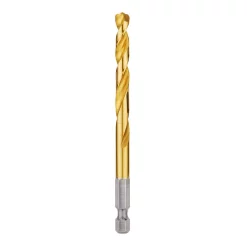 The MILWAUKEE 17/64″ SHOCKWAVE RED HELIX Titanium Drill Bit is engineered for extreme durability and long life. The QUAD EDGE tip delivers a precision start and four cutting edges to create smaller chips for faster removal and less heat leading to longer bit life. Designed with a Variable Helix that includes an aggressive 35° helical angle, which ends at 15°, the tapered drill bit with RED HELIX provide Rapid Chip Removal limiting heat buildup to Stay Sharper Longer. The bit also features an internal ENHANCED TAPERED WEB that greatly increases its strength, reducing premature breakage. Ideal for various applications including but not limited to wood, plastics, and metals, Milwaukee Red Helix Titanium Drill Bits provide up to 5X life vs. black oxide drill bits.