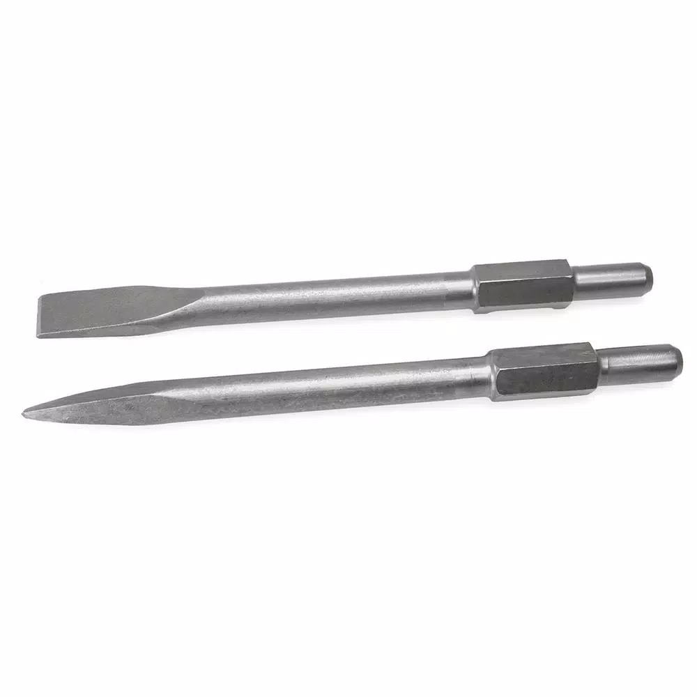 The Stark 1-1/8 in. Hex Flat and Point Chisel Set comes with the standard bull point bit and narrow flat chisel, which are the most commonly used multi-purpose bits for concrete breaker. Whether you use the point tipped chisel for breaking up concrete and asphalt or crushing and chipping with the flat chisel. This Stark Flat and Point Chisel Set allows you to tackle the toughest of demolition projects.