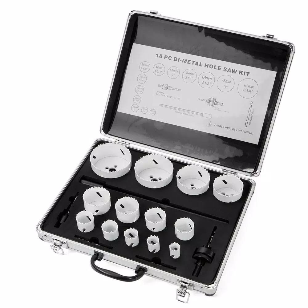 Progressive gullet design for faster and greater material removal. Bi-Metal construction. High wear resistance and allows you to cut smoother and faster. A perfect tool kit For plumbing, maintenance, electrical and construction. Gullet design for faster and greater material removal. This kit includes 13 hole saws.