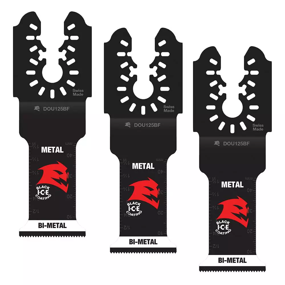 DIABLO’s universal fit bi-metal oscillating blades feature application specific designs that deliver maximum durability and longer life in metal. These high-performance blades feature an ultra-hardened cutting edge to deliver up to 5X longer life than standard blades. An optimized tooth design reduces vibration for fast and clean cuts. Black I.C.E. (Industrial Cooling Element) keeps the teeth cool and build up free for fast, clean cuts. The blade’s universal fit, adapter-free design easily attaches most tools, with the exception of Starlock tools.