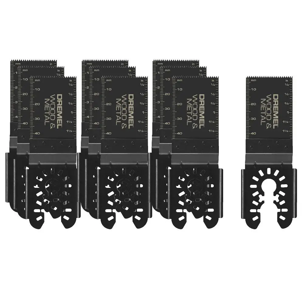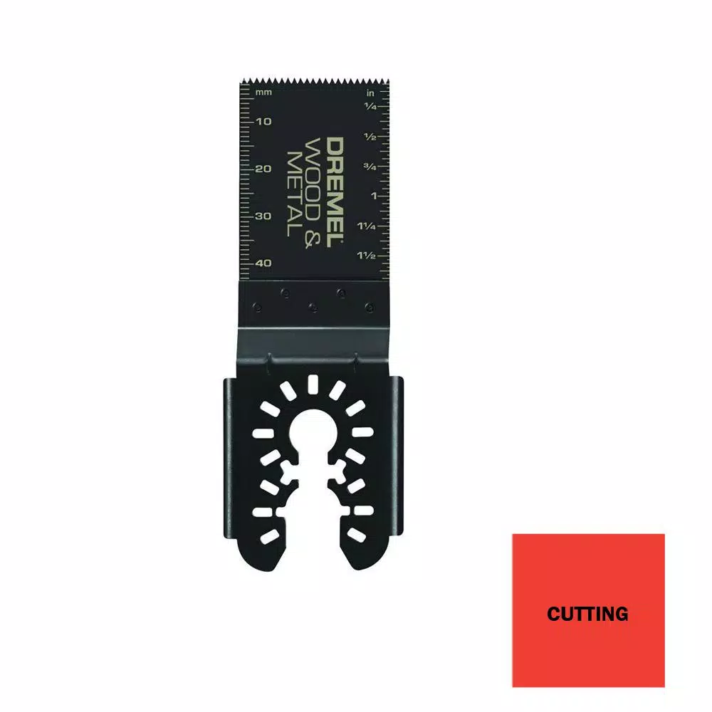 Dremel universal oscillating accessories are the first truly universal oscillating accessories available that require no adapter. The unique dual interface fits all competitive oscillating tools, including those with a quick change feature. The Dremel MM482U universal wood and metal flush cut blade is ideal for cutting doorjambs and baseboards for flooring installation. Used for precise cuts and plunge cuts, its wide 1-1/4 in. blade speeds through long cuts and can make plunge cuts up to 1-5/8 in. deep. Designed for cutting wood, drywall, plastic and soft metal like copper and 6d-8d finishing nails. The blade’s tooth pattern similar to a standard hacksaw blade.