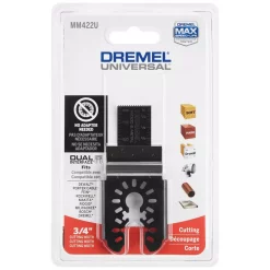 The Dremel 3/4 in. Flush Cut Blade is designed to make precision and plunge cuts. Used for cutting plastic, wood, drywall and non-ferrous metals. It is ideal for work on doorjambs or windowsills. The Dual Interface allows its use with the most common oscillating tools in the market without the need of an adapter.
