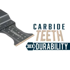 The NEW Genesis 1-3/8 in. Carbide Flush cut blade is great for door jamb and other cutting applications. With 30 times the durability of a normal oscillating tool blade, the Genesis Carbide Flush Cut blade makes quick work of cutting hardwoods, nails, screws, bolts, galvanized pipes, plaster, cement board, fiberglass, sheet metal, ceramic tile and other hardened materials. Add Genesis Tool Accessories at the beginning of your next DIY project.