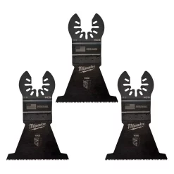 The MILWAUKEE Universal Fit OPEN-LOK Oscillating Multi-Tool 2-1/2 in. HCS Wood Blade 3 Pack is made from premium high carbon steel with edge ground teeth, providing users with optimal cutting performance in wood, PVC, drywall, and other soft materials. This Milwaukee blade delivers faster cuts than the previous generation of high carbon steel blades with more teeth and an increased 1-3/8 in. cutting width with a deeper plunge cut. This wood cutting blade for multi-tools is designed with global materials.