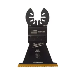 The MILWAUKEE Universal Fit OPEN-LOK 2-1/2 in. Titanium Enhanced Bi-Metal Multi-Material Oscillating Multi-Tool Blade 1 Pack is made from premium high-speed steel. This 2-1/2 in. bi-metal blade is ideal for cuts in wood, nails, PVC, and drywall. The titanium enhanced bi-metal multi-tool blades deliver faster cuts vs the previous generation, featuring more teeth with an increased cutting width and a deeper plunge cut. These oscillating multi-tool blades are designed with global materials.
