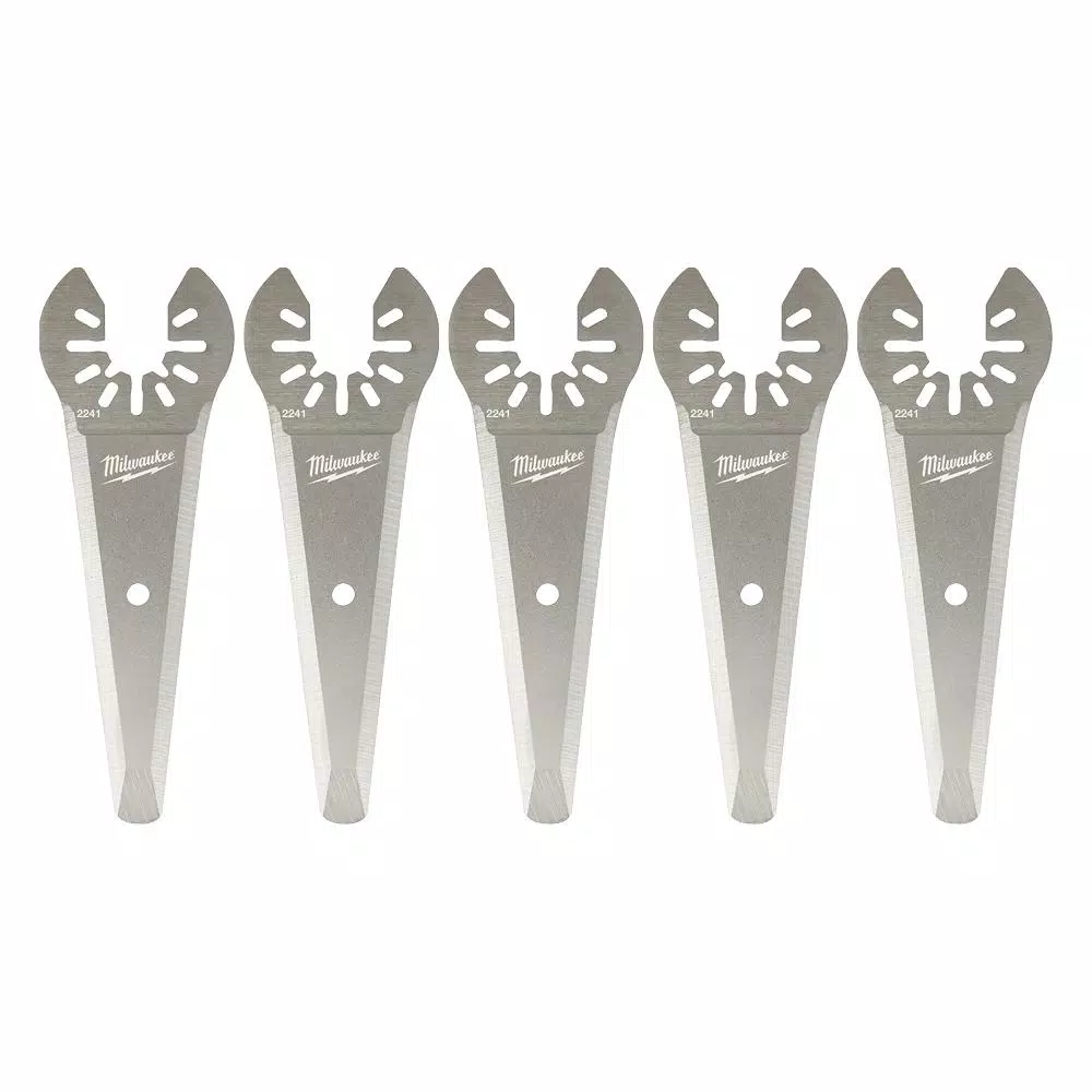 The MILWAUKEE Universal Fit OPEN-LOK Tapered Sealant Cutting Blade 5 Pack is designed for Oscillating Multi-Tools. This multi-tool sealant cutting blade is made from solid stainless steel with a tapered triple ground cutting edge. The tapered shape is ideal for users plunging into sealant in expansion joints, the side ground edges are perfect for side to side scraping and cutting, and the thick kerf extends blade life and maintains rigidity.
