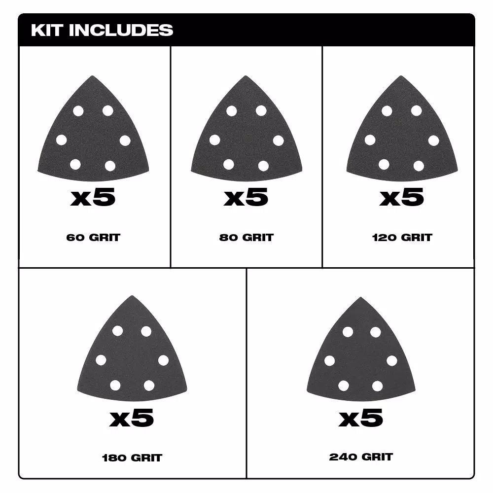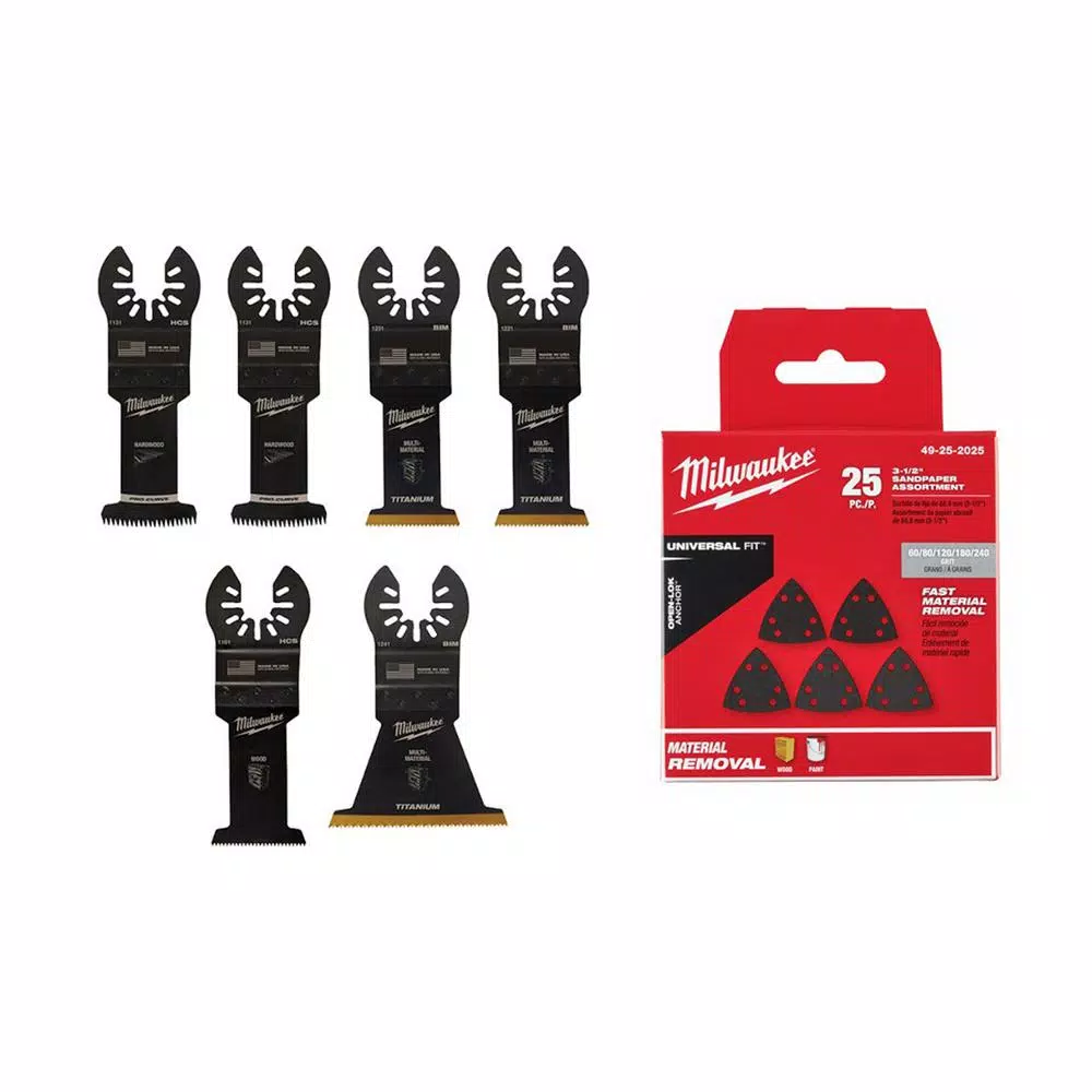 Oscillating Tool Attachments Milwaukee Oscillating Multi-Tool Blade Starter Kit With 3-1/2 In. Triangle Sandpaper Variety Pack (31-Piece)