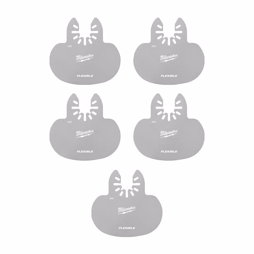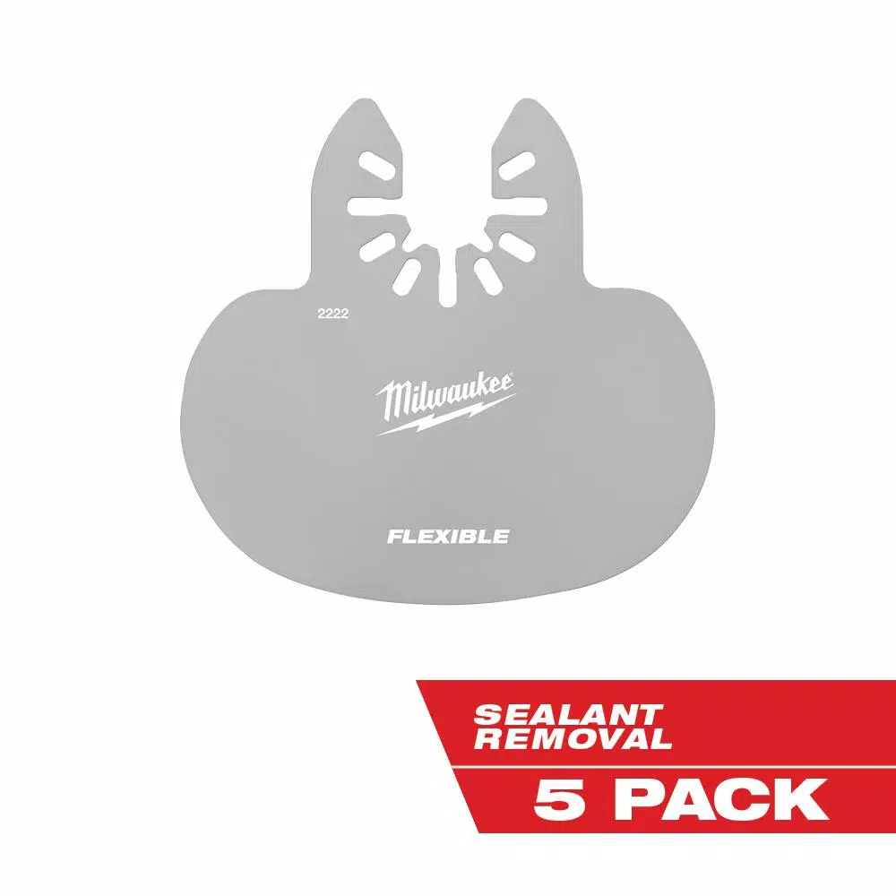 The MILWAUKEE Universal Fit OPEN-LOK Mushroom Sealant Scraper Blade 5 Pack is designed for Oscillating Multi-Tools. These multi-tool blades are made from solid stainless steel with a flexible mushroom shape for delicate sealant removal around glass. The thin kerf and no ground edges help users working in tight spaces. The versatile blade shape allows for safer glass work, ideal for windows