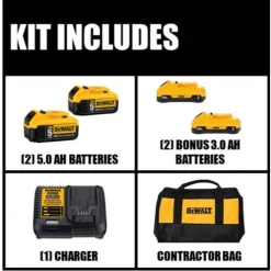 - 20-Volt MAX 5.0 Ah XR battery X2, provides up to 10 Ah of capacity