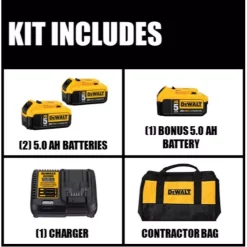 - 20-Volt MAX 5.0 Ah XR battery X2, provides up to 10 Ah of capacity