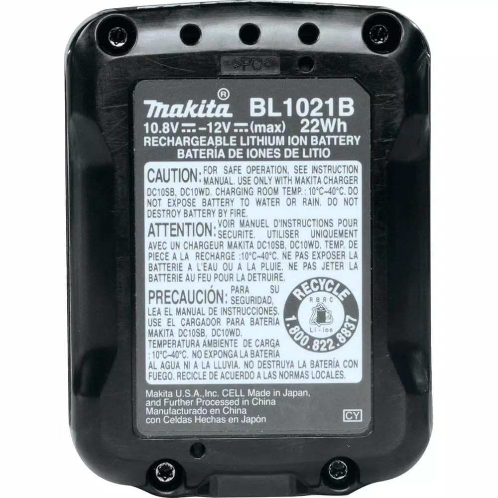 Build your own Makita tool kit with the 12-Volt MAX CXT Lithium-Ion battery and Charger Starter Pack. Makita offers an expanding range of 12-Volt MAX CXT tools and most are available as bare tools (tool only, no batteries or charger included). Pick up the Makita battery and Charger Starter Pack, then purchase the 12-Volt bare tools you need to get the job done. It’s a great way to start building a Makita cordless tool line-up. The Starter Pack includes a 12-Volt MAX CXT Lithium-Ion 2.0Ah battery, which combines efficient performance with the superior balance and ergonomics of a slide-style battery and the convenience of an on-board LED battery charge level indicator. The 12-Volt MAX CXT 2.0Ah battery (and 4.0Ah battery, sold separately) are at the heart of the expanding Makita 12-Volt MAX CXT tool series, combining performance with superior ergonomics in a compact size. The Starter Pack includes an efficient 12-Volt MAX CXT Lithium-Ion Charger (DC10WD).