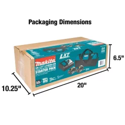 Build your own Makita Tool Kit with the 18V LXT Lithium-Ion Battery and Dual Port Charger Starter Pack (5.0Ah). Makita offers many cordless tools available as bare tools (tool only, no batteries or charger included). Pick up the Starter Pack, then purchase the 18V bare tools you need to get the job done including 18V X2 LXT Products powered by two 18V lithium-ion batteries. It’s an ideal way to start building a Makita Cordless Tool System. Makita 18V Lithium-Ion Batteries resist self-discharge so they’re ready for use even after long periods of storage. The Rapid Optimum Charger is a smart-charging system that communicates with the battery during charging to monitor current, voltage and temperature. This advanced charging technology helps optimize battery life and deliver a faster charge. The 18V Dual Port Rapid Optimum Charger (DC18RD) charges 2 batteries simultaneously, giving tool users unparalleled charging efficiency so their batteries spend more time working and less time sitting on the charger. For improved tool performance and extended battery life, Makita created Star Protection Computer Controls. Star Protection is communication technology that allows the tool and battery to exchange data in real time and monitor conditions during use to protect against overloading, over-discharging and overheating. Makita, the innovation leader in cordless tool technology, has the worlds largest cordless tool system powered by 18V lithium-ion slide-style batteries.