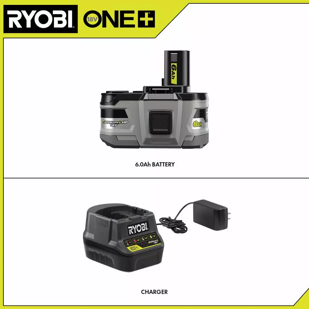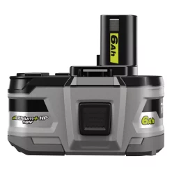RYOBI introduces the 18V ONE+ Lithium-Ion 6.0 Ah LITHIUM+ HP High Capacity Battery and Charger. This battery features advanced electronics to allow you to maximize tool performance with added capacity to all 18V ONE+ tools. With superior runtime, power, and performance, this battery can take on more demanding applications than ever before with the introduction of HP Technology. HP Technology communicates with brushless tools to maximize performance in all applications, allowing users to make faster cuts, drive larger screws, utilize bigger drill bits, and more. It has a durably constructed frame for impact protection and has a built-in 4-bar illuminated charge indicator. The included charger provides quick charging times for user convenience. Best of all, it’s a part of the RYOBI ONE+ System of over 175 cordless tools that all work on the same battery platform. Backed by the RYOBI 3-Year Manufacturer’s Warranty, this kit includes an 18V ONE+ Lithium-Ion 6.0 Ah LITHIUM+ HP High Capacity Battery, and 18V Lithium-Ion Charger, and an operator’s manual.