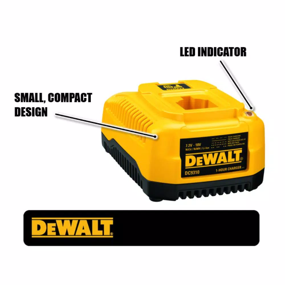 This DEWALT Battery Charger is compatible with all DEWALT 7.2-18-Volt lithium-ion, NiMH and NiCd batteries, except for Univolt. It features a 3-stage charging cycle that extends the life and charge of your batteries. You can fully charge them in as little as one hour.