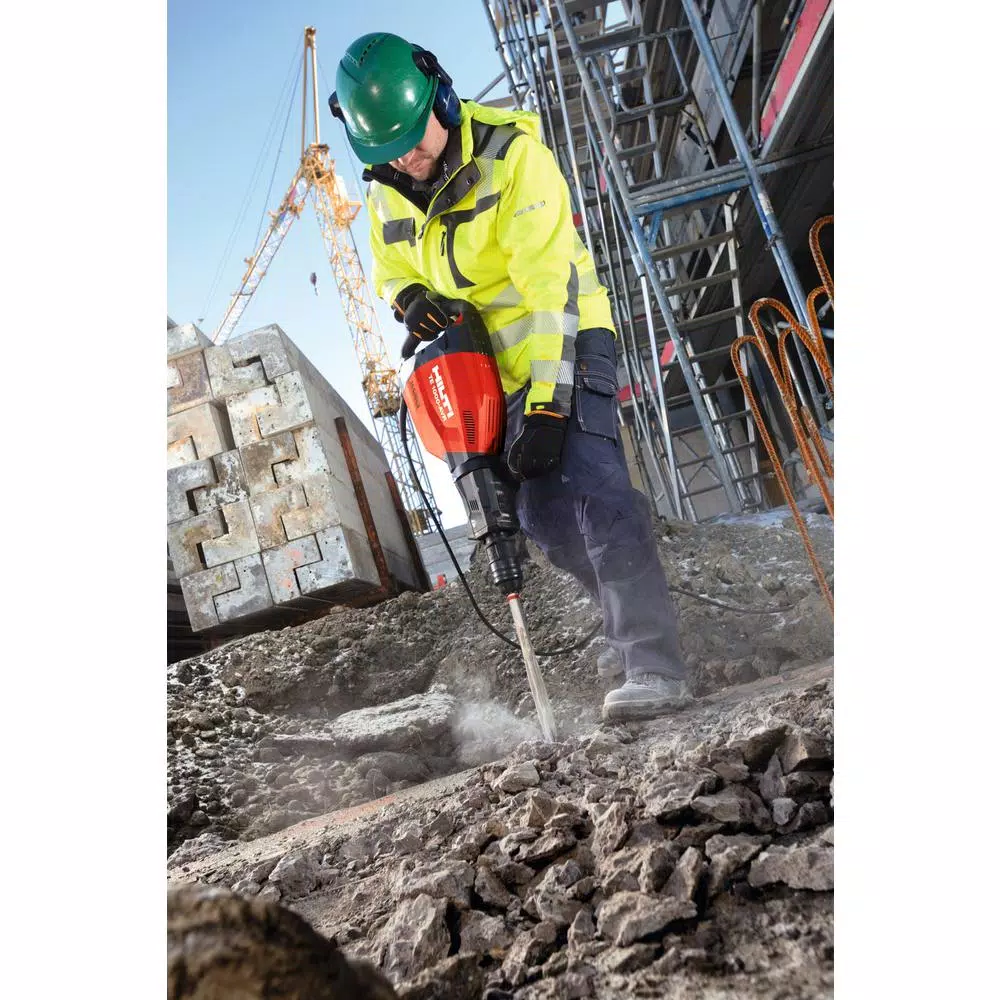 The Hilti TE 1000-AVR, demolition hammer features Active Vibration Reduction (AVR) and a detachable power cord. The power supply cord can be used indoors or outdoors. This cord provides added length for any job.