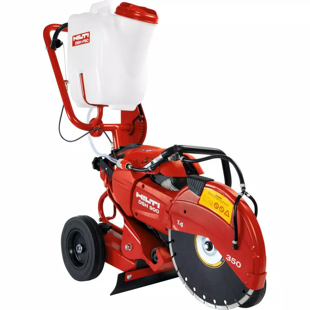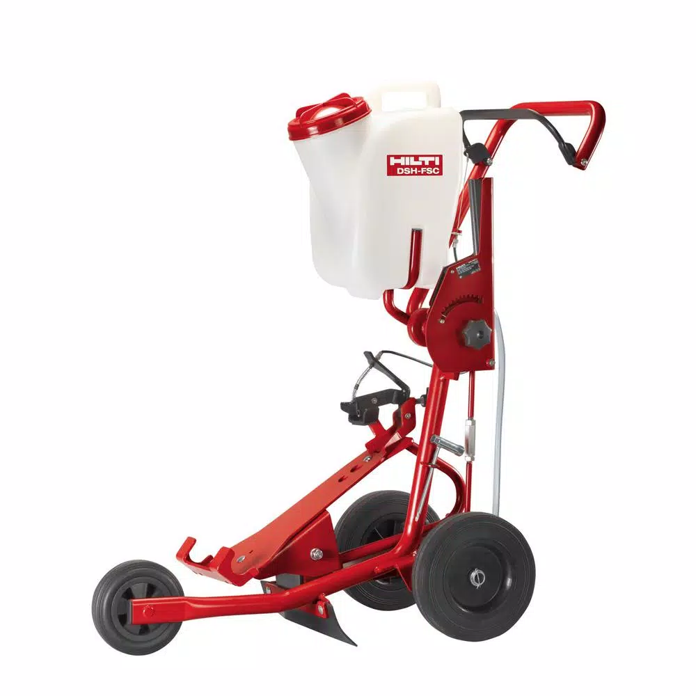 The Hilti DSH-FSC Gas Saw Floor Cart is a heavy-duty design for small cutting jobs requiring the flexibility of a hand-held gas saw combined with the precision cut and performance of a larger model. Complete with a gravity-fed water container, the DSH-FSC is completely portable, while giving you the dust-suppression required on many jobs. When large walk-behind saws take too long to set up, require too much space, or are just not practical, the DSH-FSC Gas Saw Floor Cart is the workhorse that helps you get the job done.