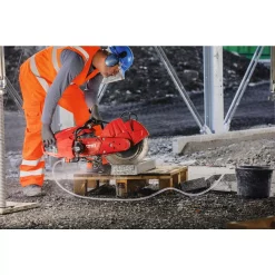 - Leverages the power of the gas saw to produce pressurized water for a virtually dustless environment