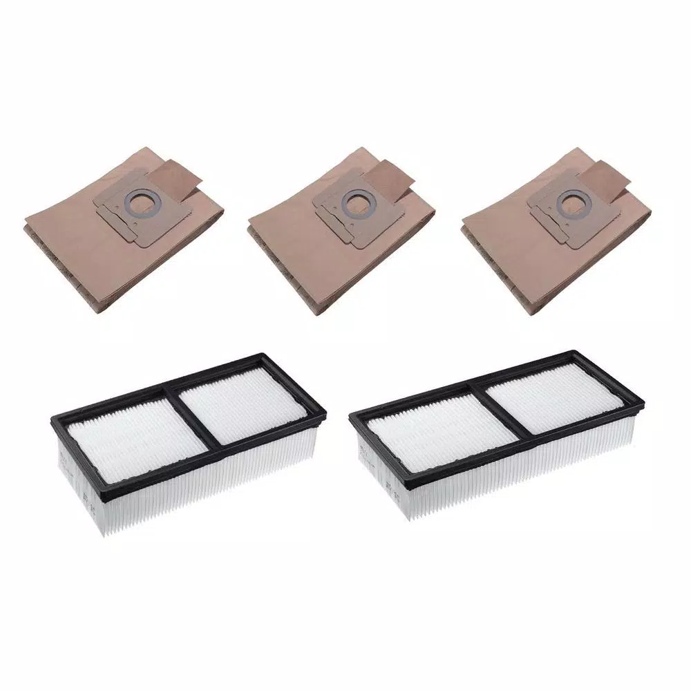 - Package includes 2x HEPA wet dry filters (2177708) and three packs of 5 fleece vaccum bags (2177884)
