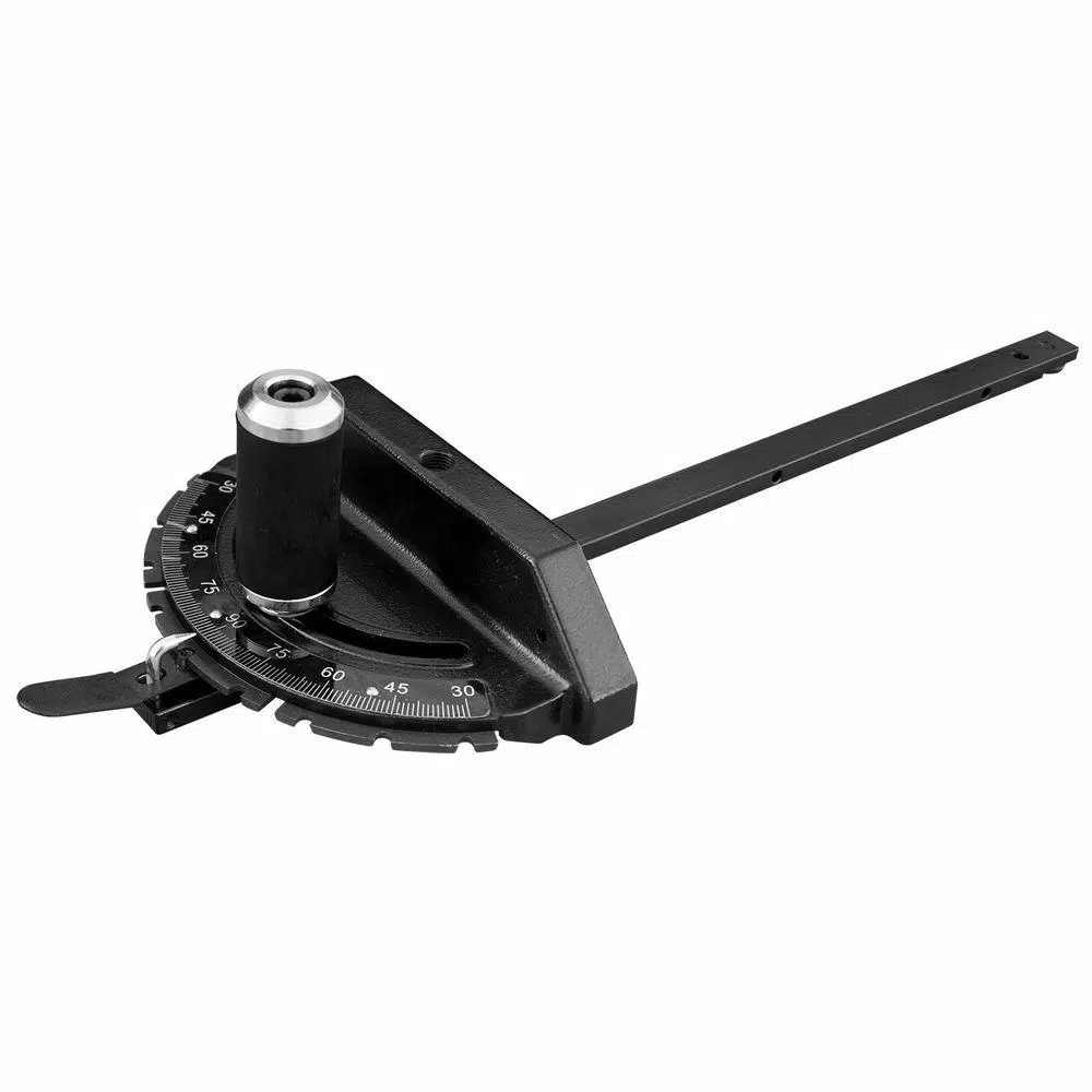 The Deluxe Table Saw Miter Gauge by POWERTEC. This specialty miter gauge is designed to help you make consistent and highly accurate crosscuts at any angle for your woodworking applications. Made to accommodate 3/4 in. wide by 3/8 in. slots, with or without t-slotted miter slots, it serves as an ideal replacement and upgrade for most popular brands of table saws. Positive Stops at All Common Angles Possesses 30, 45, 60, 75 and 90° stops. Additionally, you can manually set it to hold any position in-between, and all stops can be made in both directions for project versatility. Additional Features Gauge comes complete with a tip resistant washer that works with t-slotted miter slots to prevent tipping when the gauge is extended over your work surface edges and can be removed for non-t-slotted miter slots. It also comes complete with set screws to remove play and eliminate wobbling in the t-track. Well Crafted Design with a Premium Build Our table saw miter gauge features a heavy duty cast metal construction with a smooth, midnight black profile for a low-friction fit. It is accompanied with a large grip designed for outstanding control and superior comfort, with an easy to adjust angle setting.