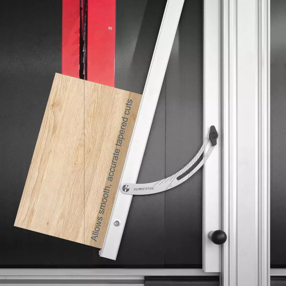 - FUNCTION: Used as a taper cutting guide for table saws, this easy-to-use woodworking tool helps you to make long rip cuts at angles from 1” per foot (4.8 degrees) or up to 3” per foot (15 degrees)