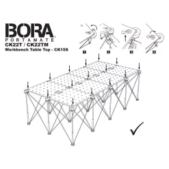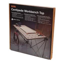Get the most out of your Centipede work stand with the CK22T Centipede Tabletop perfectly designed to turn your Centipede into the ultimate workstation. This heavy-duty top securely fastens to your Centipede P-tops with six easy-to-use twist lock handles so you don’t have to worry about your work surface slipping out from under your project. Hinged in the middle for easy storage and portability, this Centipede accessory makes it simpler than ever to set up and tear down a temporary workspace, whether you’re on the job site or in the driveway. With plenty of dog holes and a high weight capacity, you can build just about anything on your Centipede Tabletop work stand not included.