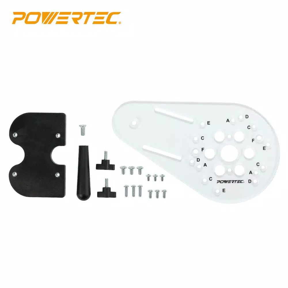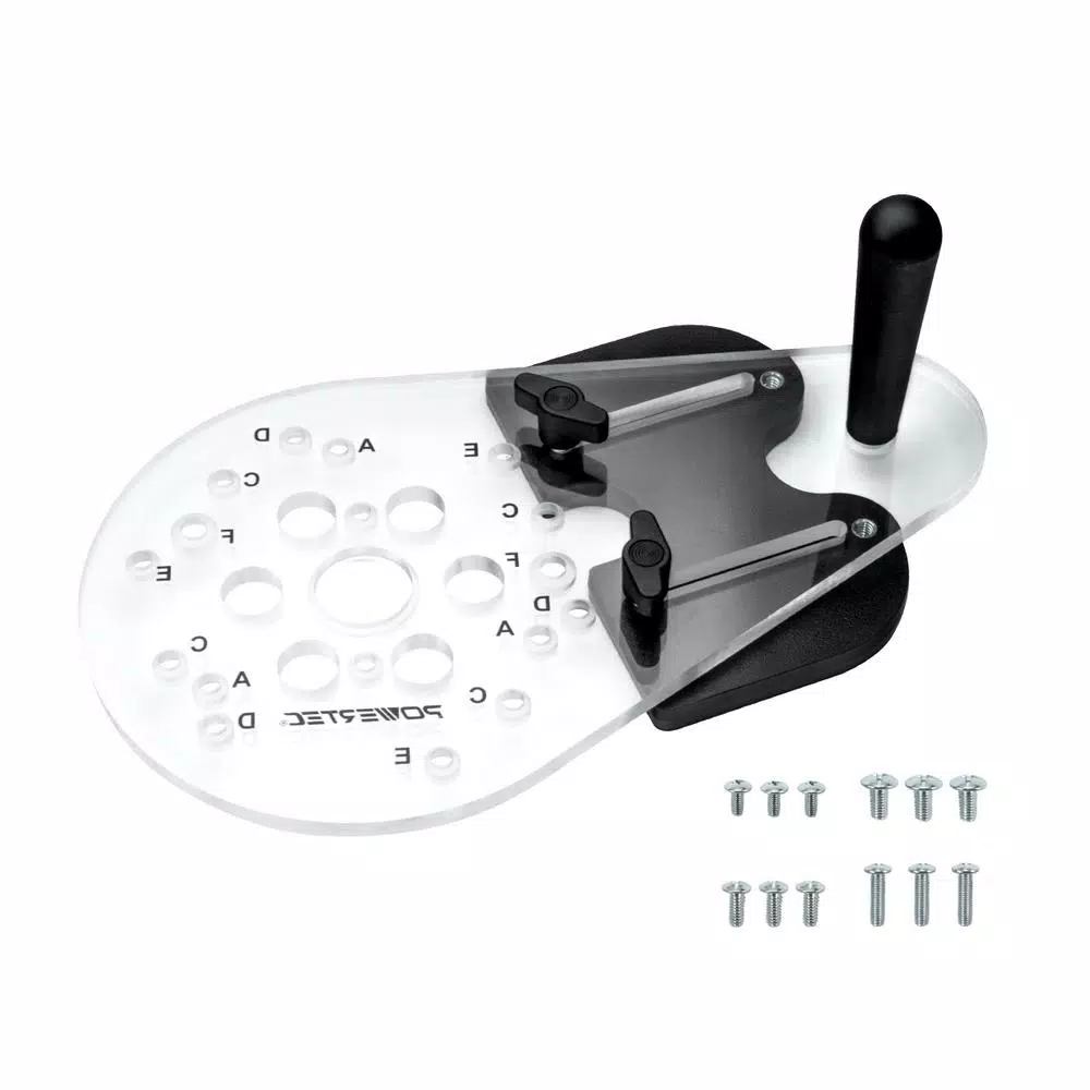 Introducing the Universal Router Plate with Reversible Fence Kit by POWERTEC. This convenient woodworking tool adds precision to your routing applications, while offering a flexible option that accommodates a wide assortment of standard routers. It can be used for template routing, edge routing, shaping and grooving – plus it works with inlays, straight and curved edges. Featuring a removable/reversible fence, this must-have combo adds increased functionally to your routing applications and permits superior edge routing with bits without bearing guides. It gives you a higher confidence of achieving consistent results for optimal workflow. ADDITIONAL FEATURES: – Made of durable, super thick 5/16 in. clear acrylic to give your work optimal visibility. – Optimized with tested pre-drilled holes to convert a large list of routers to the more standard 1-3/16 in. Porter Cable style guide bushings. – Fastener package includes assorted screw sizes to accommodate router template guide variations. – An ergonomic handle with a large base provides added stability. Accommodates to the following brands/series: Porter Cable (Series: 690 Series, 8529 Series)/Ryobi (R1631K)/Makita (RF1101)/Bosch (1617 fix base, 1618)/Hitachi (M8V, M-12VC, TR12)/Milwaukee (5615, 5616, 5619)/DeWALT (DW621, DW616 series, DW625, DW618)/Craftsman (315 275 000, 315 175 040, 315 175 050, 315 175 060, 315 175 070)/Elu (177)/Fein (FT 1800) and more.
