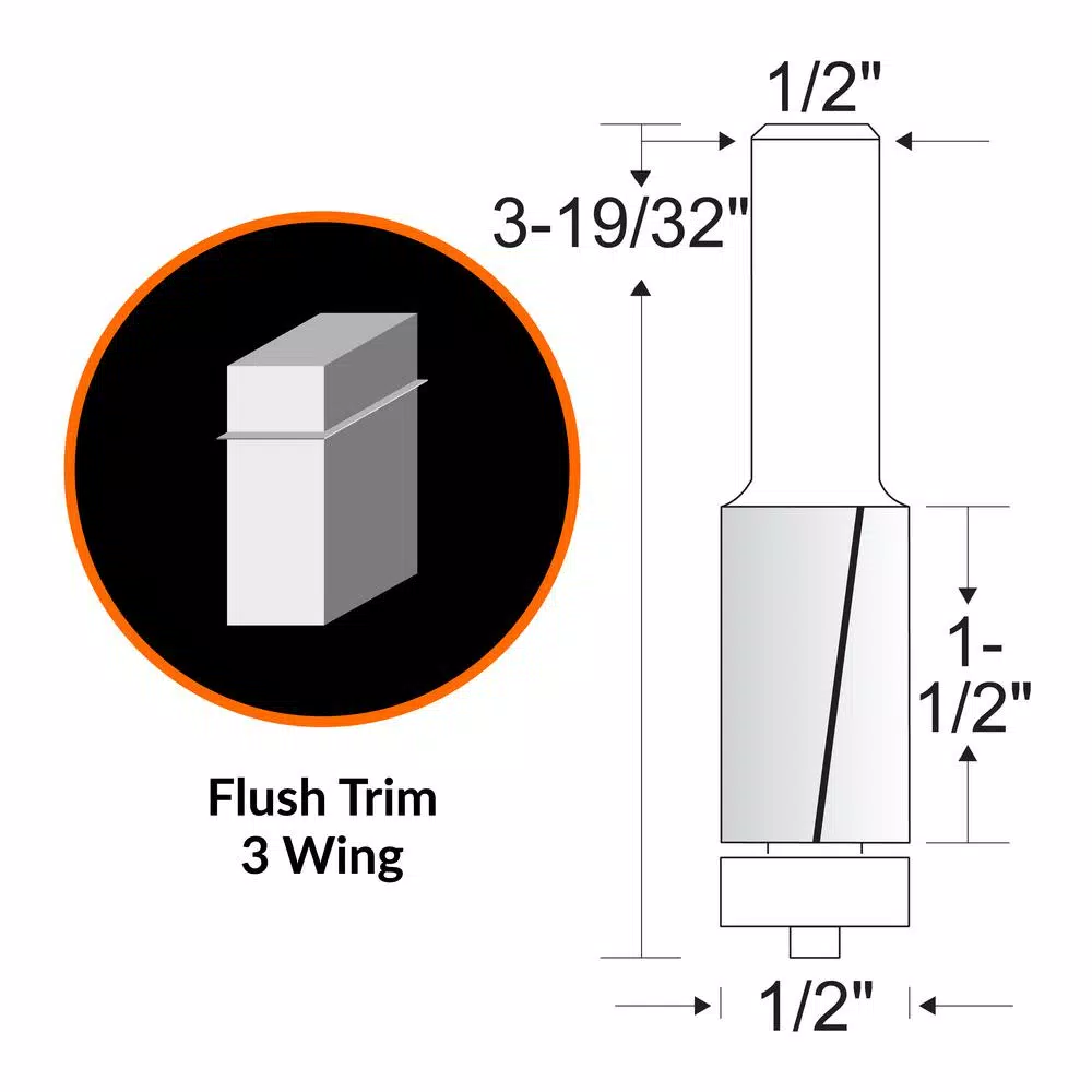 Remember when your bits could handle the toughest materials. Add some shape into your edges with the WEN Professional-Grade High Speed Steel Carbide-Tipped Router Bit series. These reliable and durable heat-treated bits feature extremely sharp tungsten carbide blades that slice through even the toughest of woods. Our flush trim profile combined with the three-wing design replicate complex edges and make flush surfaces in your workpieces. Features a 1/2 in. Dia, a 1-1/2 in. cutting length, a 3-19/32 in. overall length, a 1/2 in. Dia shank and a maximum RPM of 24000. And if this bit doesn’t cut it, check out the rest of our line of professional router bits, available in a wide variety of profiles and sizes. With WEN by your side, any job is within reach; from surface trimming to unique cabinetry, simple dados to decorative edges, you’ll be able to handle it all. Remember when you stepped your carpentry up a notch. Remember WEN.